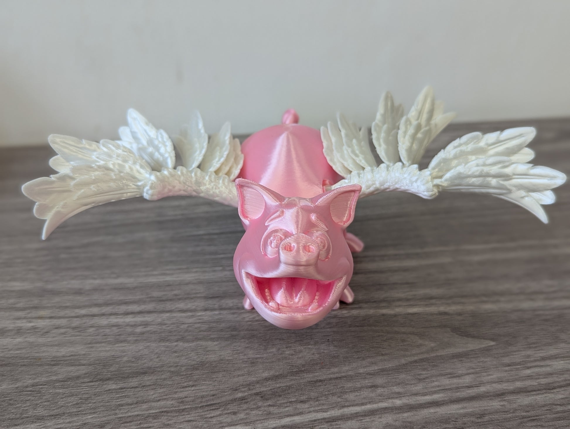 This pig has a wing span of 20 cm and is 12 cm long.