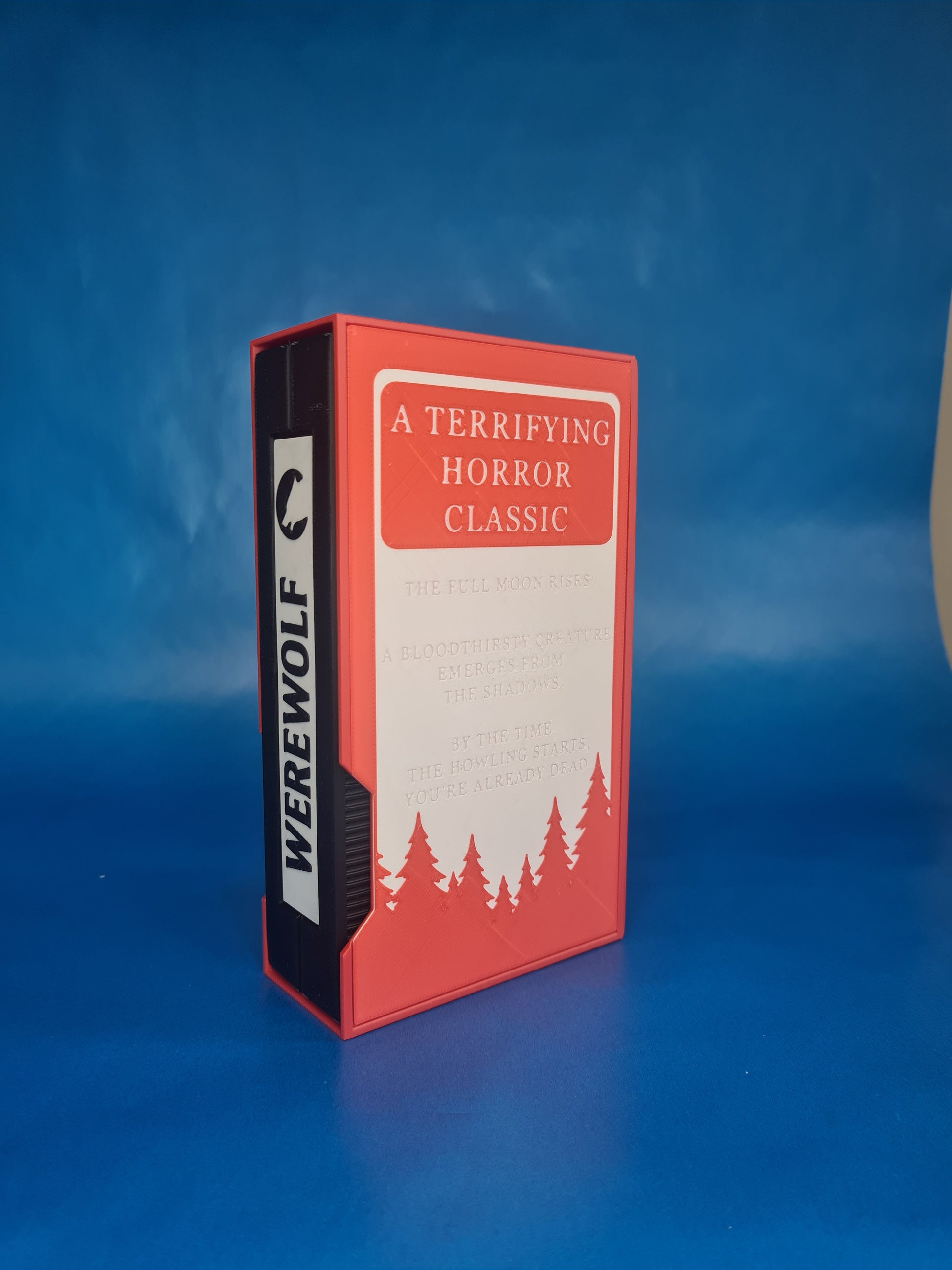 This Werewolf VHS Deck Box is a must-have for any Magic the Gathering enthusiast. This Deck Box is perfect for those who have a Werewolf Commander deck of cards that they want to have worthy home!! The design is sure to impress and make you stand out from the crowd, weather playing with friends, or having it out on display at home. The box is large enough to hold up to 100 double sleeved cards, making it perfect for those who play commander.